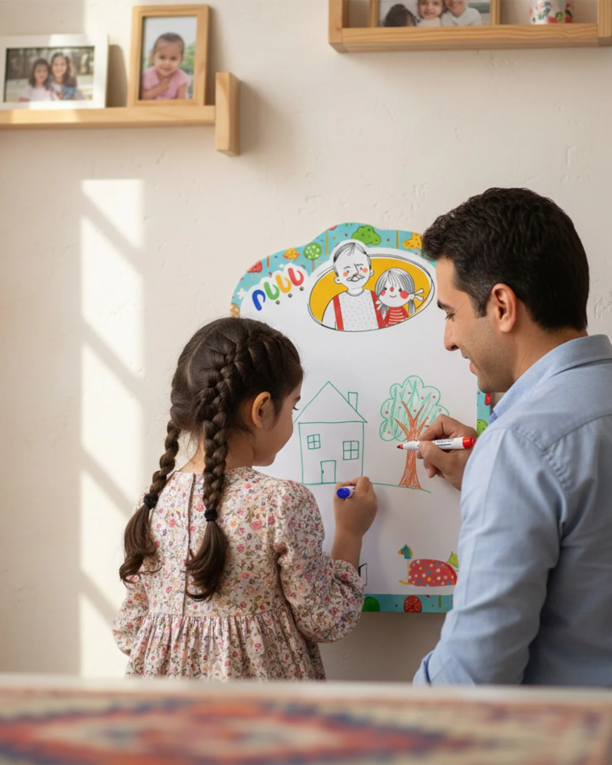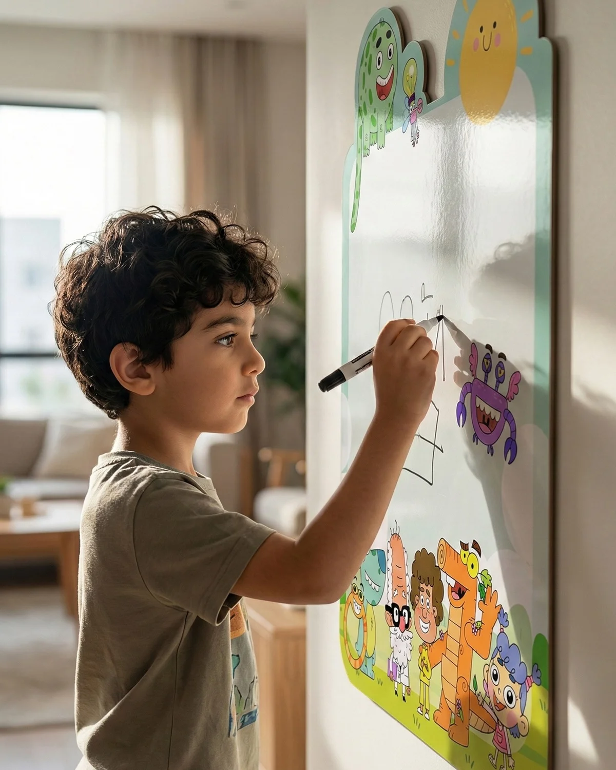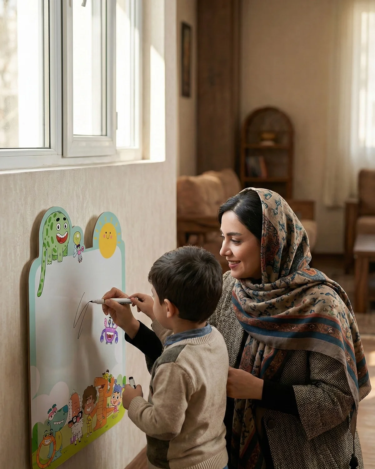 وایتبرد دوطرفه «بابام» با طراحی شاد از شخصیت محبوب انیمیشن، محصولی آموزشی و کاربردی برای کودکان است. این وایتبرد دارای دو سطح قابل استفاده بوده و امکان نوشتن، تمرین، نقاشی و بازیهای آموزشی را فراهم میکند. همراه بودن ماژیک و تخته وایتبرد، این محصول را به گزینهای کامل برای آموزش در خانه، مهدکودکها و پکهای فرهنگی و هدیه تبدیل کرده است. طراحی جذاب و استفاده آسان، یادگیری را برای کودکان لذتبخشتر میکند.